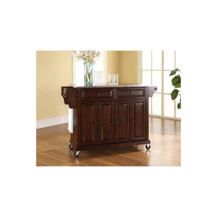 • Maykoosh Artisanal Abode Full Size Kitchen Cart with Stainless Steel Top, Black, Tiered Shelf, 18 x 52 x 36 inches, Modern Mobile Kitchen Cart, Adjustable Shelved Storage Behind Doors image - 1