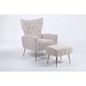 Velvet Accent Chair with Ottoman - Tufted Upholstery, Gold Legs - Beige