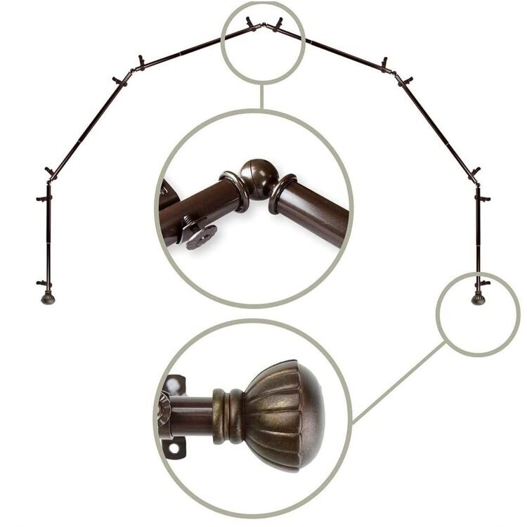 • 13/16 Inch 6-Sided Bay Window Curtain Rod - Cocoa Corner Drapery Rod image - 1