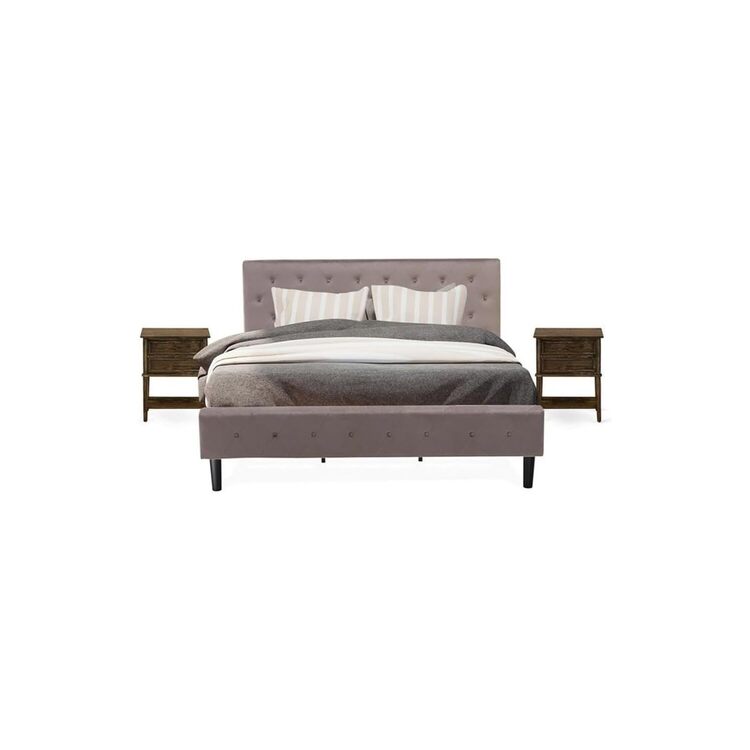 • 3-Piece Bed Set - Velvet Upholstered Platform Bed with Nightstand image - 1