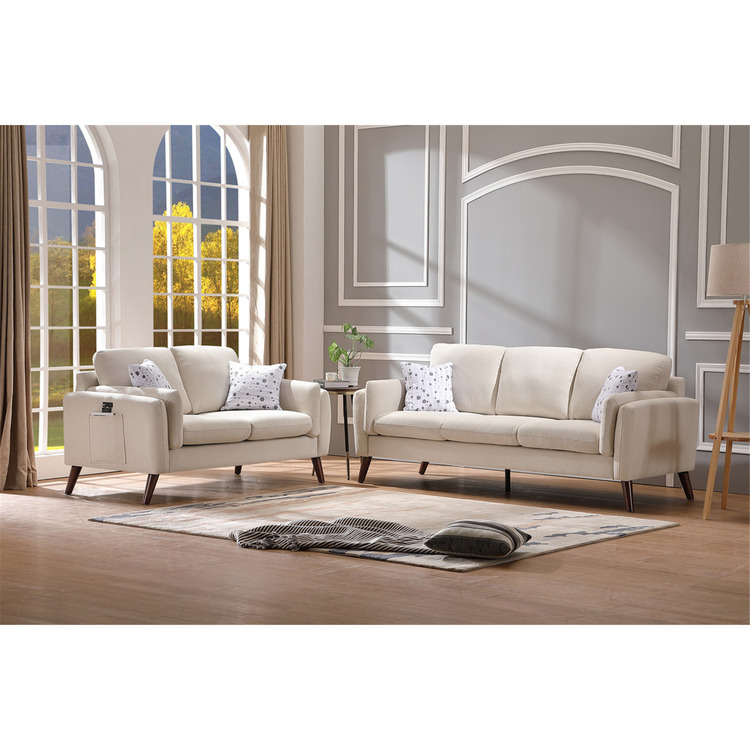 • Maykoosh Victorian Virtue Beige Linen Sofa and Loveseat Living Room Set with USB Charger and Tablet Pocket image - 1