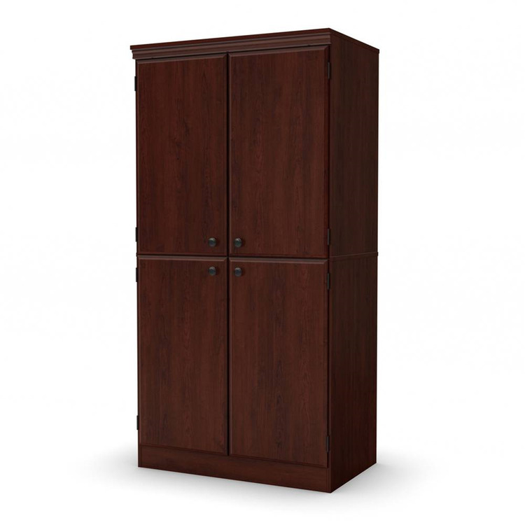 • HomeStock Vintage Variety Tall 4-Door Storage Cabinet with Adjustable Shelves, Royal Cherry, 19.5"D x 33"W x 62.5"H, 2 Adjustable Shelves and 1 Fixed Shelf image - 1