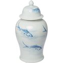 • Maykoosh Vintage Visions 19" Ginger Jar Lidded, Painted Blue Koi Fish Over White Porcelain, Round Curved Silhouette with Finial Lid, Elegant Accent Piece image - 1