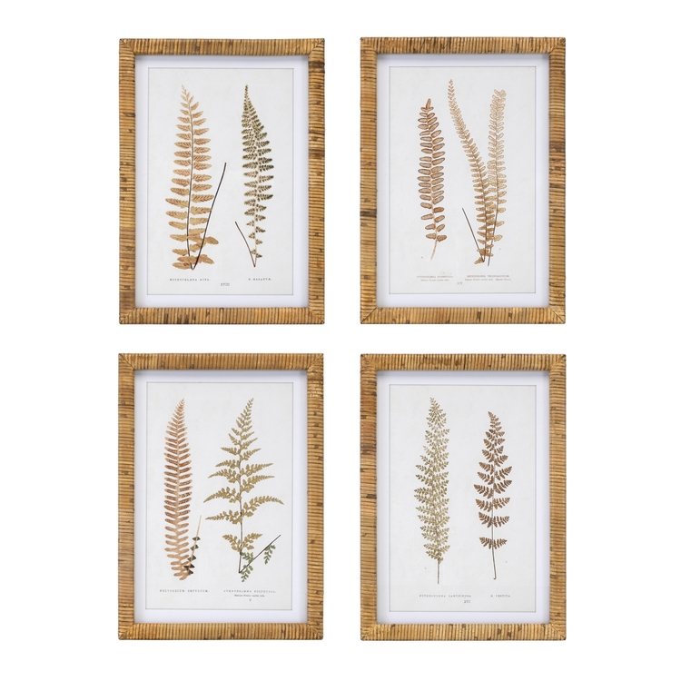 Melrose International Framed Fern Print (Set of 4) 17.75"SQ Wood/MDF/Glass