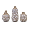 • Melrose International Leaf Print Vase with Wood Design (Set of 3) image - 1