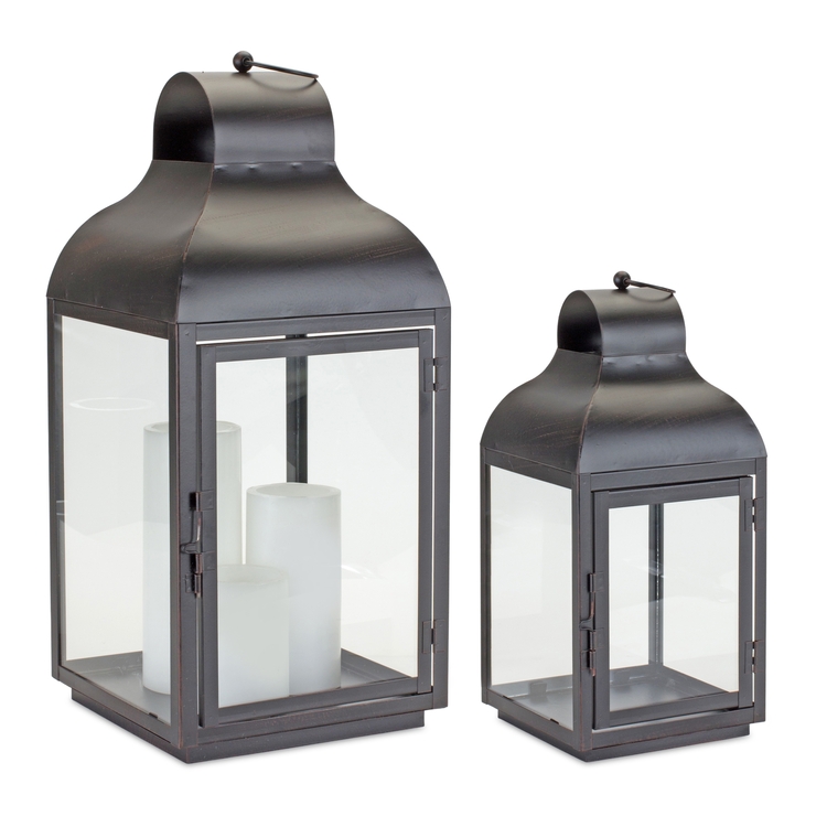 Melrose International Modern Iron Lantern with Curved Top (Set of 2)