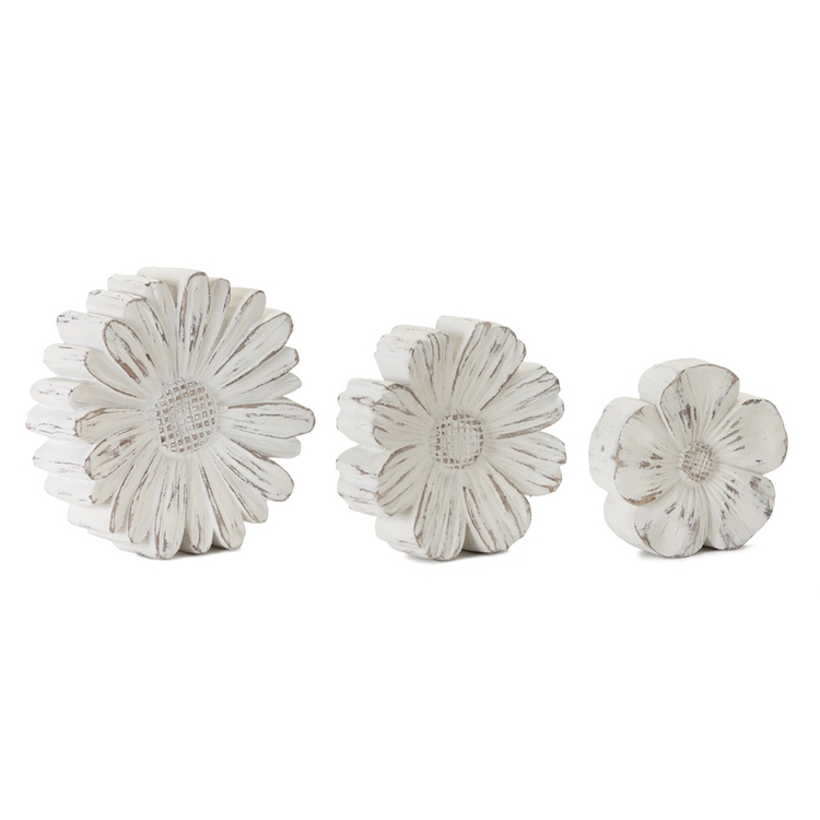 • Melrose International White Washed Stone Flower Decor - Set of 3 image - 1