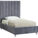 Grey Velvet Twin Bed Frame Solid Wood Deep Tufted Design - Meridian Furniture
