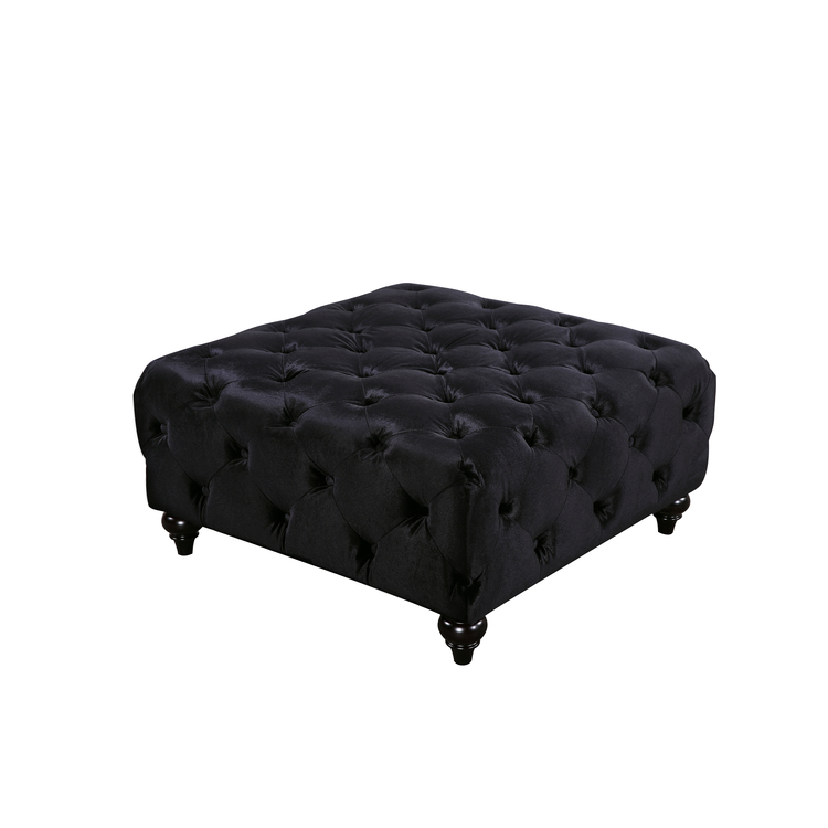 • Meridian Furniture Black Velvet Chesterfield Ottoman - Stylish Footrest image - 1