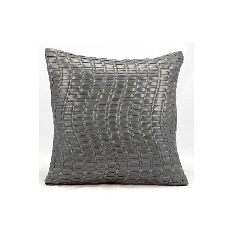 • Natural Leather And Hide Silver Grey Wavy Basket Weave Pillow image - 1