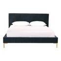 • Moe's Home Collection Queen Velvet Bed - Modern Blue Bed Frame with Headboard image - 1