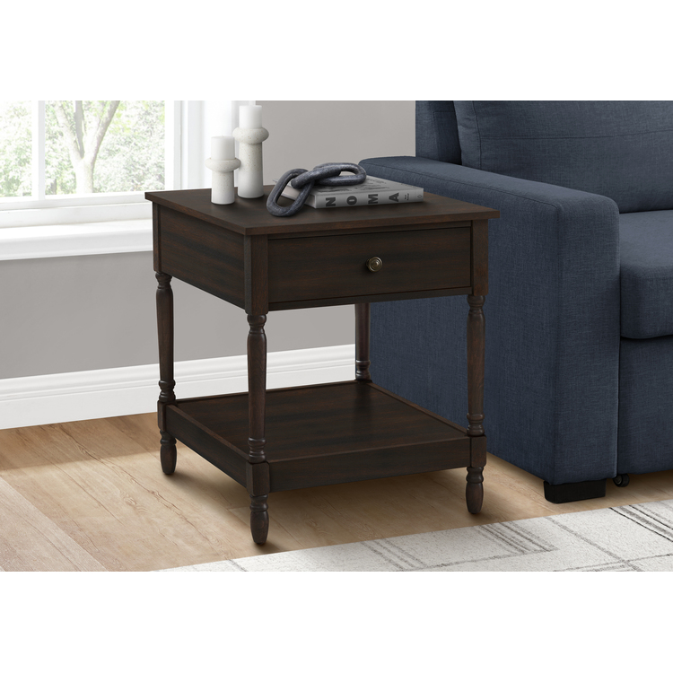Monarch Specialties Accent Table, 2 Tier, End, Side Table, Square, Nightstand, Bedroom, Lamp, Brown Veneer, Traditional