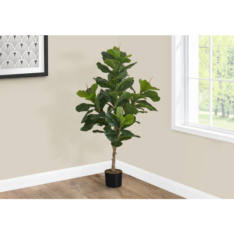 • Monarch Specialties Artificial Plant, 47" Tall, Fiddle Tree, Indoor, Faux, Fake, Floor, Greenery, Potted, Real Touch, Decorative, Green Leaves, Black Pot image - 1