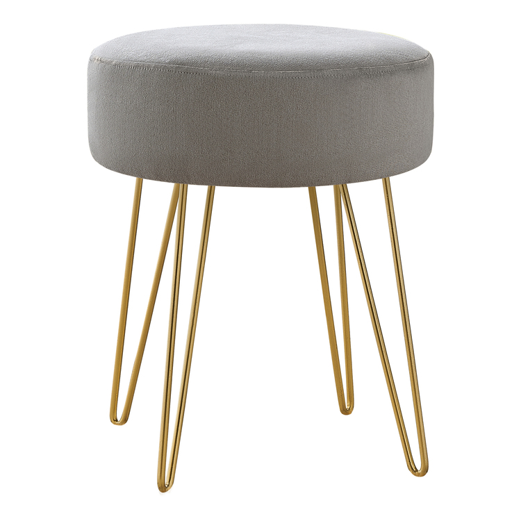 • Monarch Specialties Ottoman, Pouf, Footrest, Foot Stool, 14" Round, Fabric, Metal Legs, Grey, Gold, Contemporary, Modern image - 1