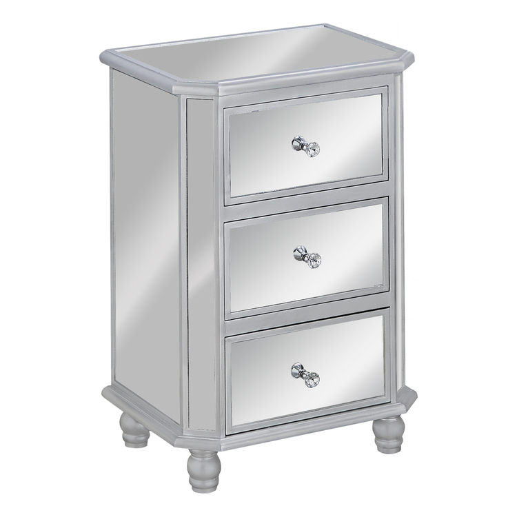• Monarch Specialties Accent Table, Side, End, Nightstand, Lamp, Storage Drawer, Living Room, Bedroom, Mirror, Grey, Clear, Transitional image - 1
