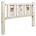 • Homestead Collection King Headboard w/ Laser Engraved Elk Design, Clear Lacquer Finish image - 1