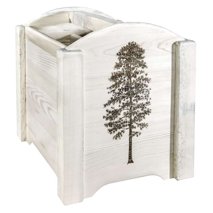• Homestead Collection Magazine Rack w/ Laser Engraved Pine Design, Clear Lacquer Finish image - 1