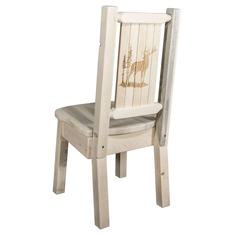 • Homestead Collection Side Chair w/ Laser Engraved Elk Design, Clear Lacquer Finish image - 1