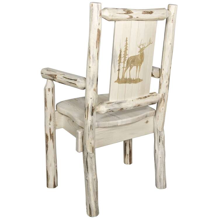 • Montana Collection Captain's Chair w/ Laser Engraved Elk Design, Clear Lacquer Finish image - 1