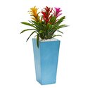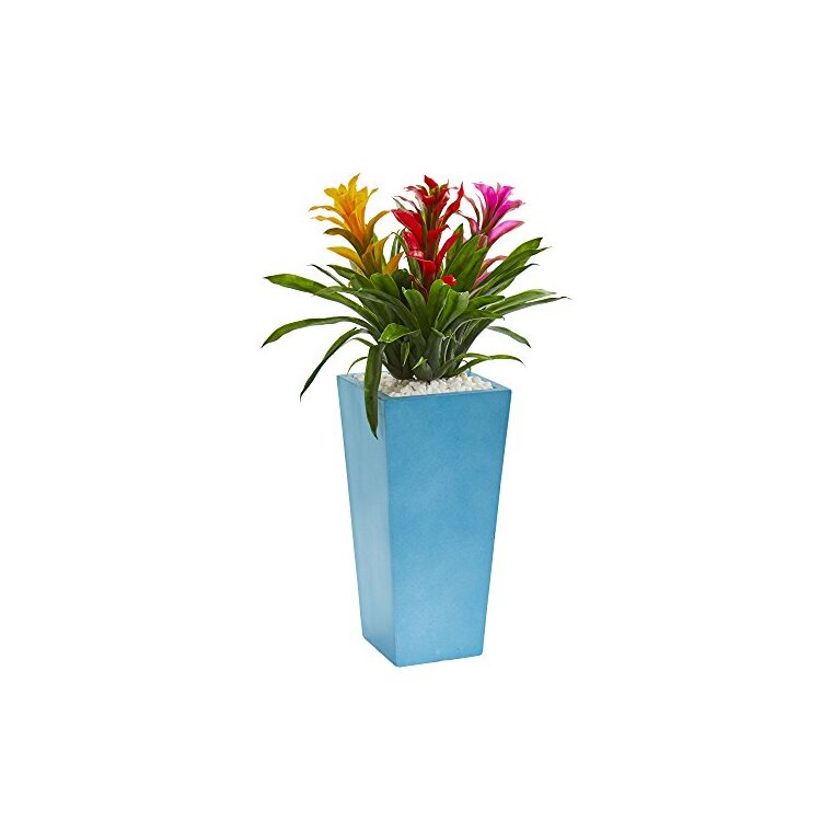 • Artificial Bromeliad Plant in Turquoise Planter & Vase 26 Tall - Nearly Natural image - 1
