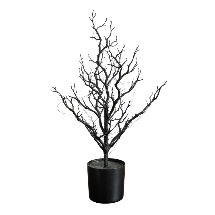 • Nearly Natural 2ft. Pre-Lit Artificial Halloween Black Spooky Twig Tree with 60 Orange & Purple Copper Wire String LED Lights image - 1