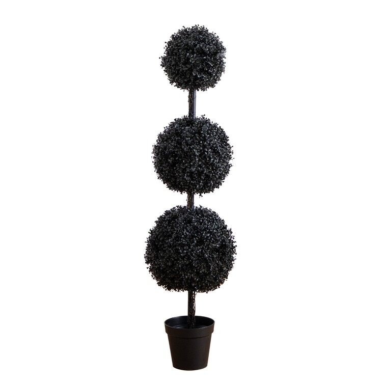 • Nearly Natural 5ft. UV Resistant Artificial Halloween Black Triple Ball Boxwood Topiary (Indoor/Outdoor) image - 1