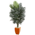 Artificial Paradise Palm Tree 6.5ft with Orange Planter and Green Foliage - Nearly Natural