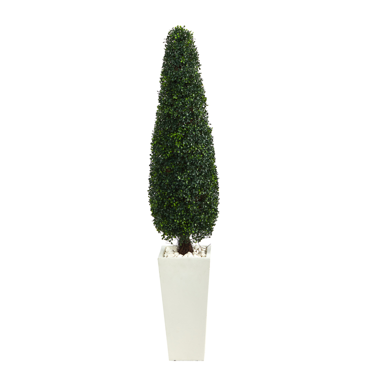 • Nearly Natural 63in. Boxwood Topiary Artificial Tree in Tall White Planter UV Resistant (Indoor/Outdoor) image - 1