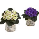 • Nearly Natural 8in. African Violet Artificial Plant in Floral Design Vase (Set of 2) image - 1