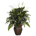 • Nearly Natural Mixed Greens with Spathiphyllum & Decorative image - 1