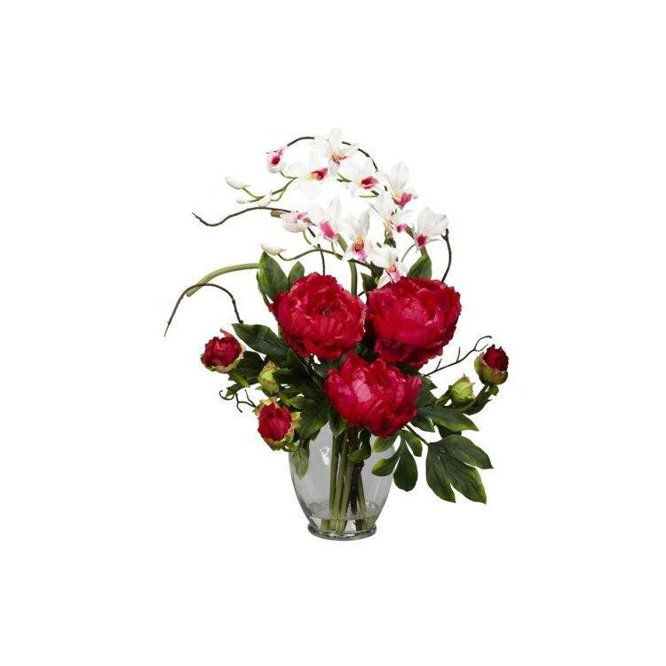 Peonies & Orchid Artificial Silk Flower Arrangement with Fresh - Looking Design - Nearly Natural