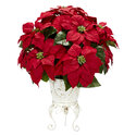 • Nearly Natural Poinsettia with Metal Planter Silk Flower Arrangement image - 1