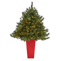 Nearly Natural Wyoming Mixed Pine Artificial Christmas Tree with 150 Clear Lights and 270 Bendable Branches in Tower Planter