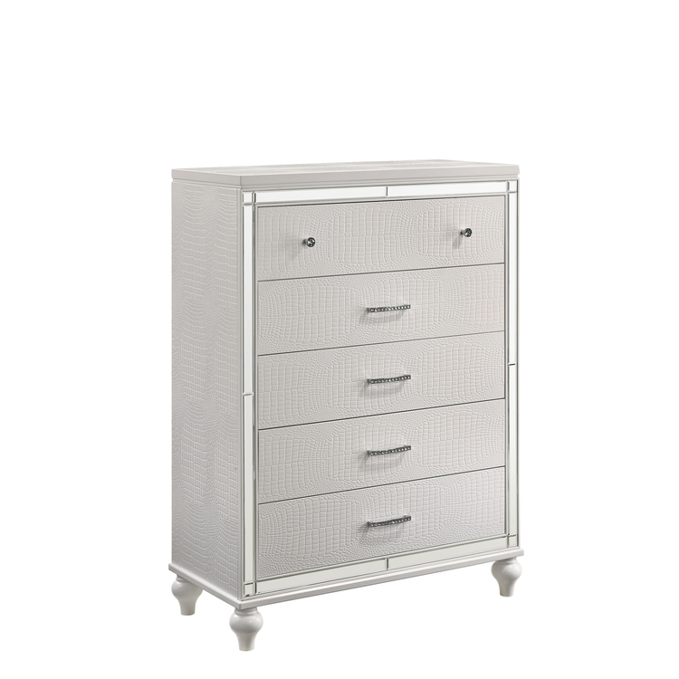 • New Classic Furniture Valentino 5 Drawer Chest-White image - 1