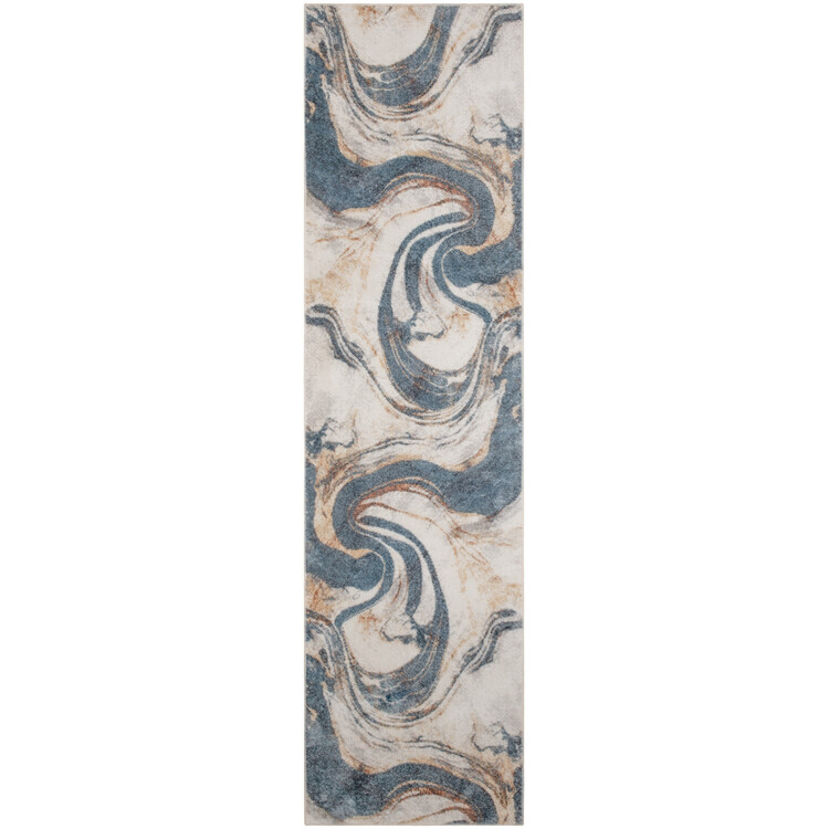 • Nourison Astra Machine Washable 2'2" x 8' Ivory Blue Modern Indoor Rug image - 1