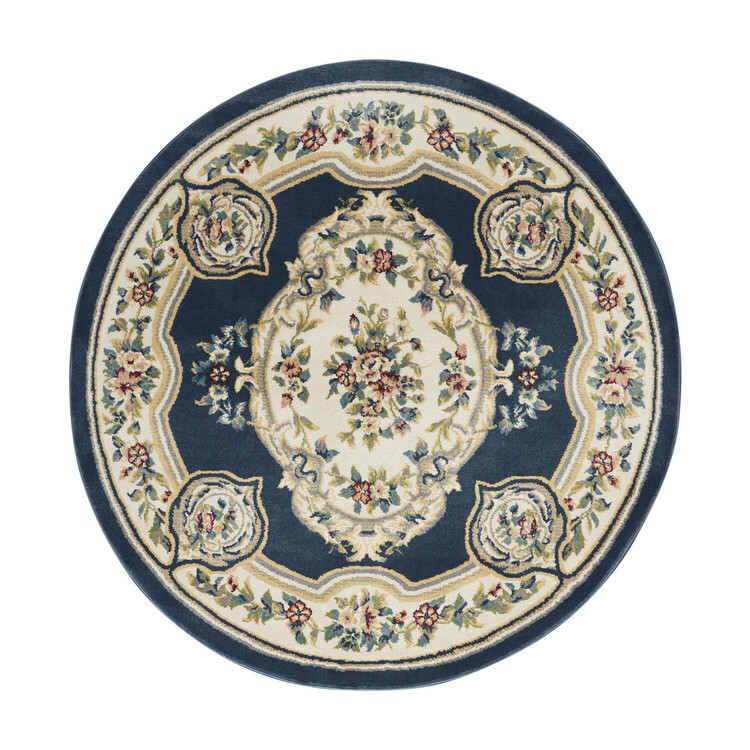 • Nourison Home Aubusson Floral Navy 7'10" x round Area Rug, Easy Cleaning, Non Shedding, Bed Room, Living Room, Dining Room, Kitchen (8 Round) image - 1