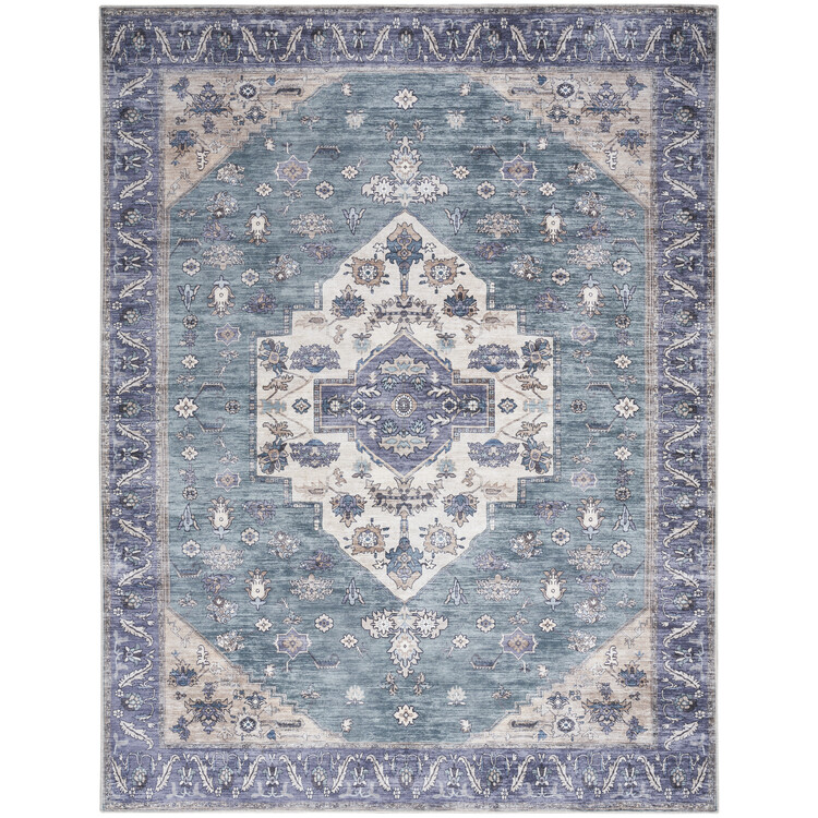 • Nourison Home Brilliance Machine Washable Traditional Teal Blue 5'3" x 7'3" Area -Rug, Easy Clean, Non Shedding, Bed Room, Living Room, Dining Room, Kitchen (5x7) image - 1