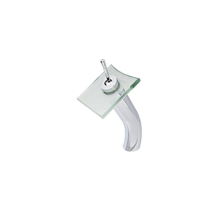 • Novatto SQUARED Single Lever Waterfall Vessel Faucet Set, Chrome/ Clear Glass image - 1