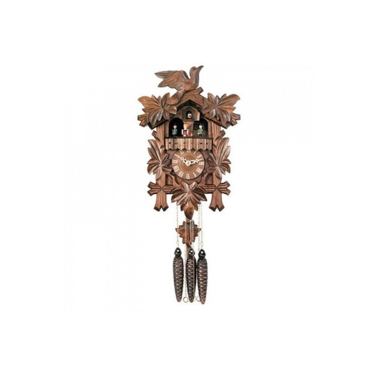 One Day Musical Cuckoo Clock with Dancers, Five Hand-carved Maple Leaves, and One Bird