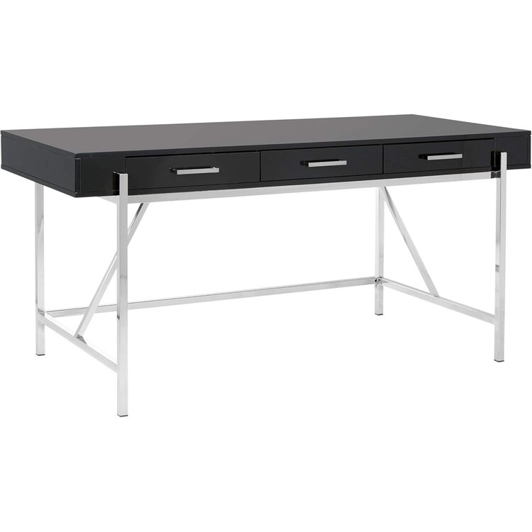 • 64" Broadway Modern Executive Desk with 3 Drawers, Black Gloss Desk, Chrome Frame image - 1