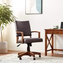 • OSP Home Furnishings Deluxe Wood Bankers Chair in Espresso Faux Leather with Antique Bronze Nailheads and Medium Brown Wood image - 1