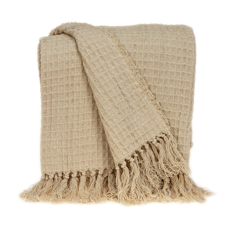 Parkland Collection Venice Transitional Beige Handloomed 52" x 67" Cotton Throw Blanket