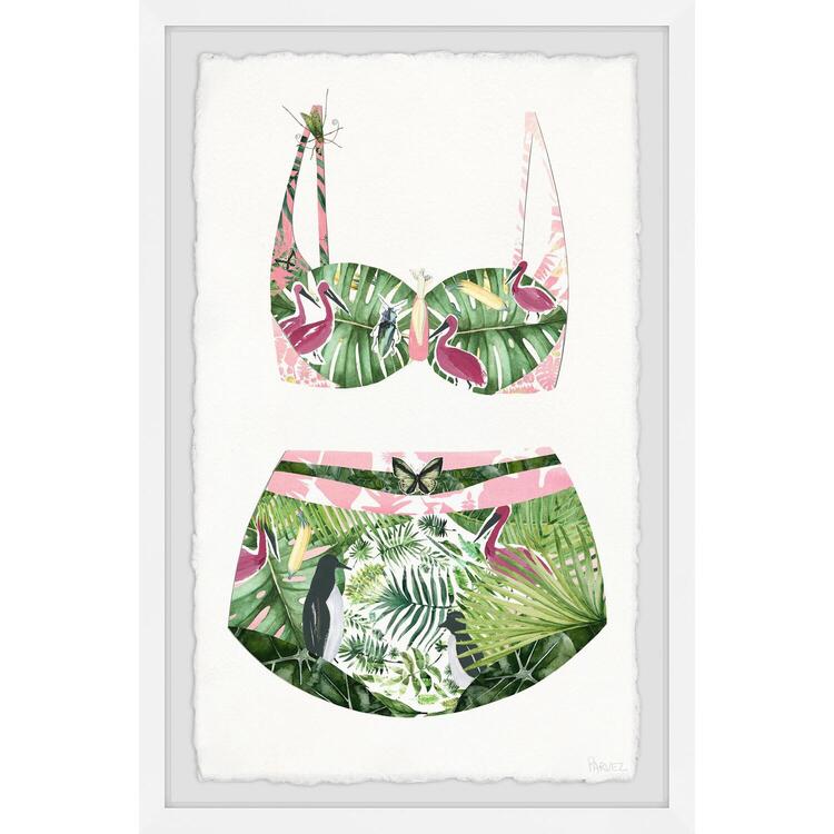 • Flamingos Palm Swimsuit Giclée Print Framed Painting 8x12 - Parvez Taj image - 1