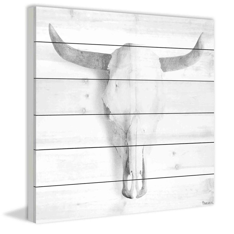 • Parvez Taj Horned Skull Painting Print on White Wood image - 1
