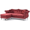 Hollywood 81 in. Burgundy Velvet Chesterfield Sectional Sofa with 2-Throw Pillow