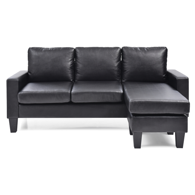 • Passion Furniture Black Faux Leather L-Shaped Sofa - 76" Jenna Sectional image - 1