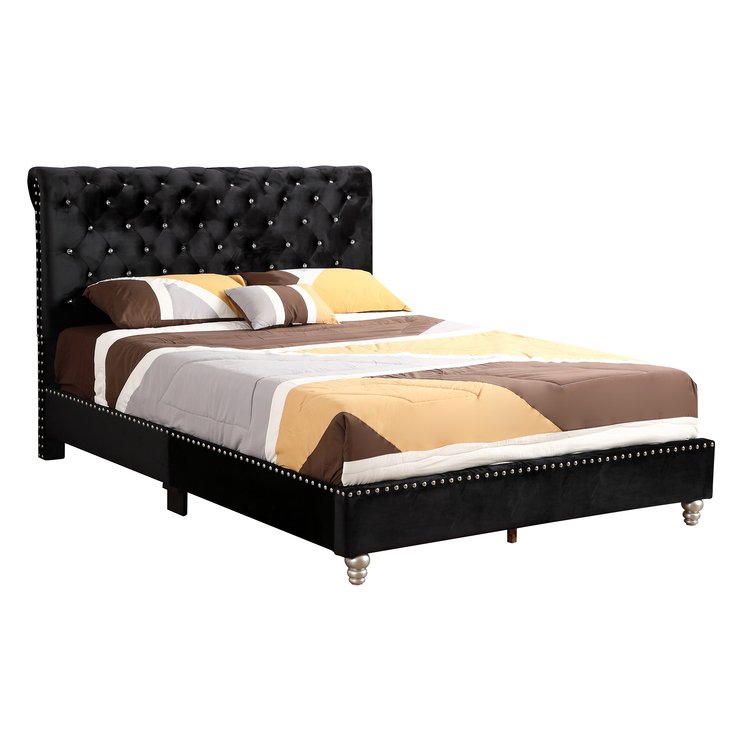 • Maxx Black Tufted Upholstered Full Panel Bed image - 1