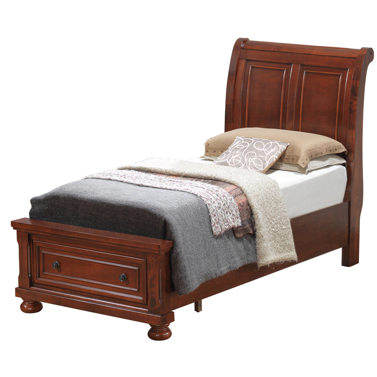• Passion Furniture Cherry Wood Sleigh Bed - Twin Size Meade Furniture image - 1