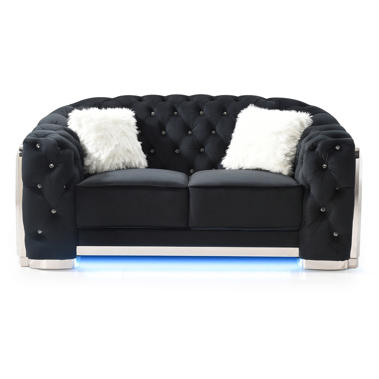 • Passion Furniture Black Velvet Sofa - 71" Straight Sofa with Flared Arms image - 1