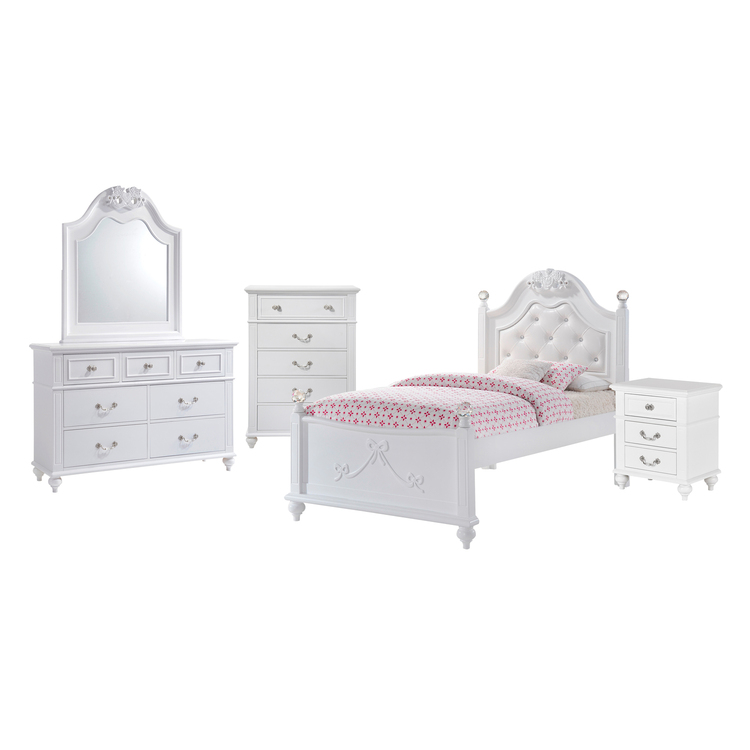 • White Faux Leather Twin Bed Storage Trundle Set 5PC Full Size - Picket House Furnishings image - 1